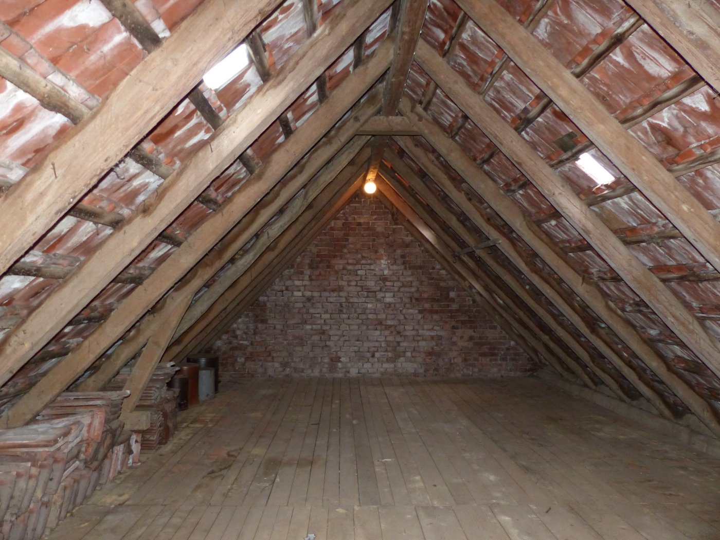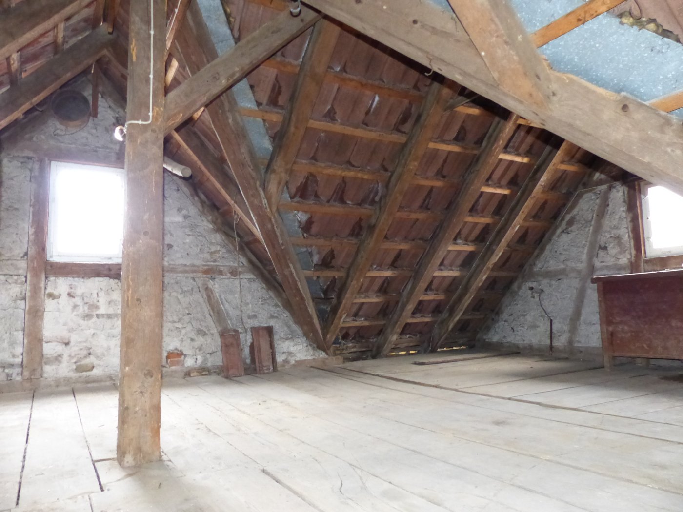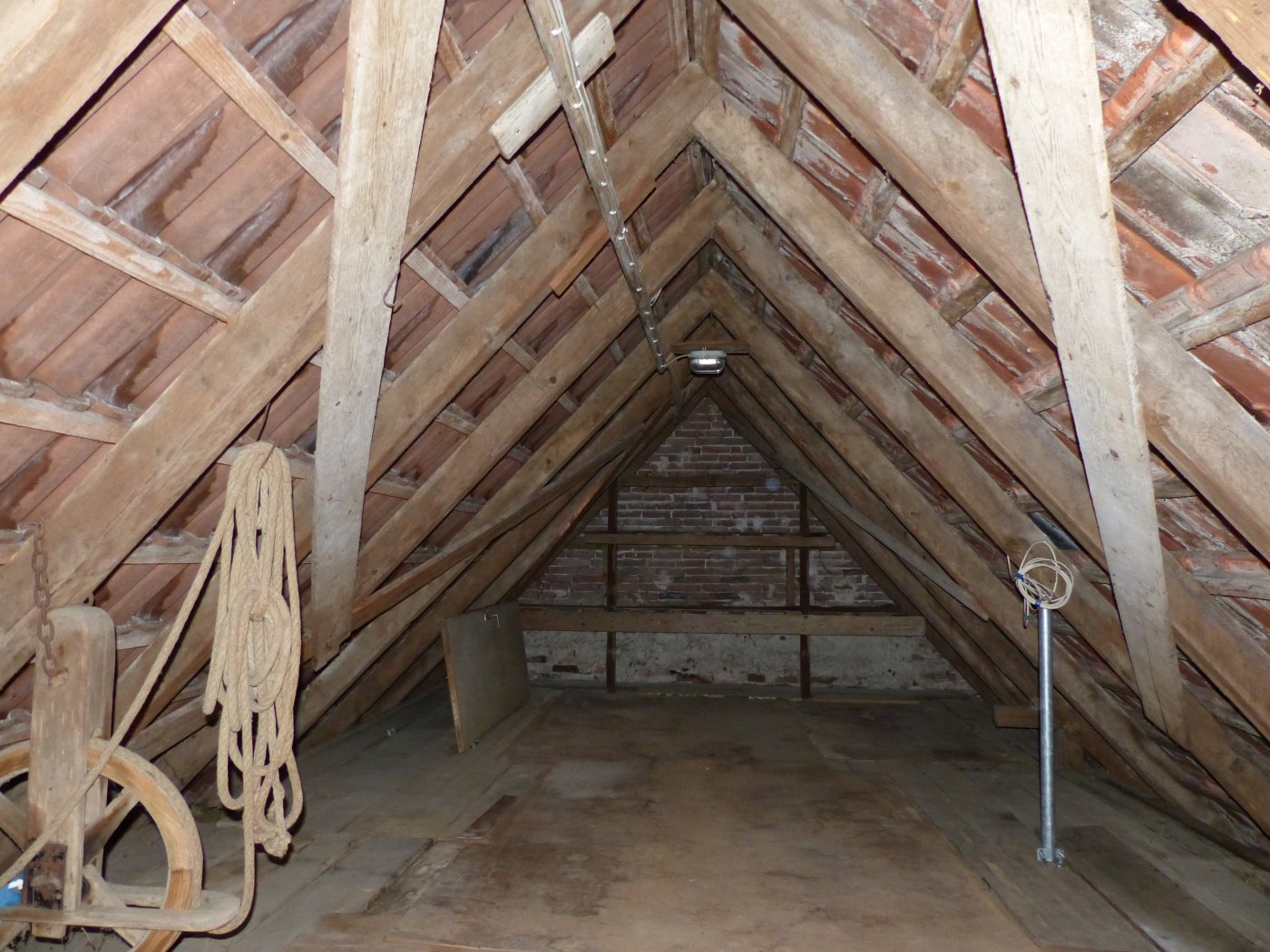 Das unausgebaute und unisolierte Dachgeschoss wurde seither als klassischer Lagerraum genutzt. Durch die Höhe könnte aber auch über den Ausbau zu einer Galerie nachgedacht werden.